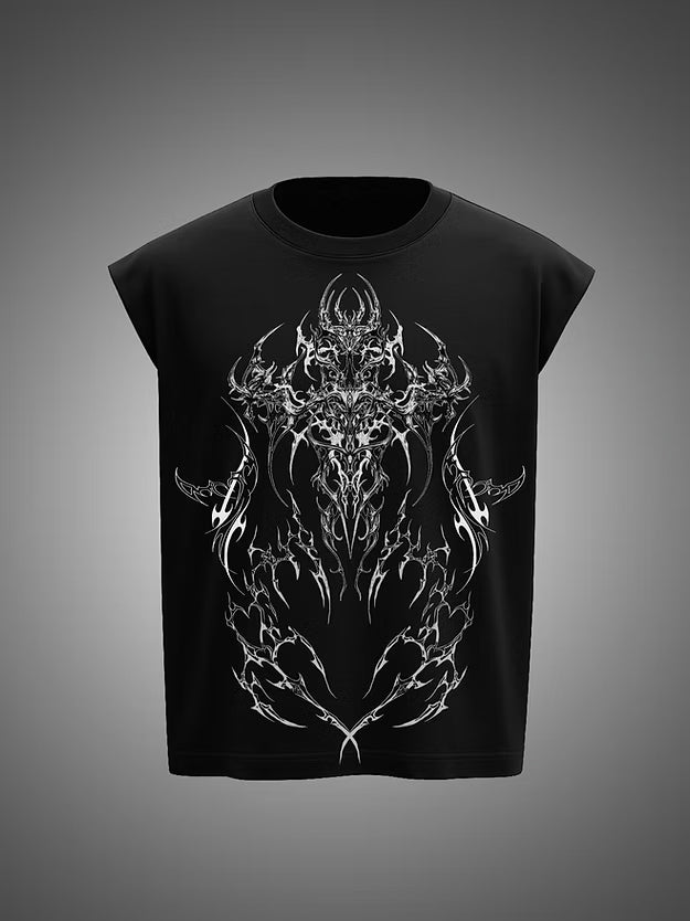 Unleash your raw intensity with the Zeltos Corebreaker Vest, designed for those who train hard and live louder. This black vest features an intricate, chrome-style graphic on the back — a symmetrical fusion of biomechanical power and street-edge energy.